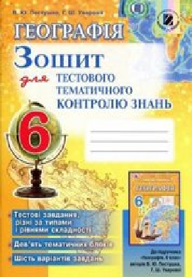 Позаду залишилося звичне для школярів природознавство, яке собою замінила географія. У 6 класі новий предмет може здатися складним, однак на допомогу учням і їх батькам приходять готові домашні завдання до зошита тестового тематичного контролю знань, який містить у собі всі необхідні дані, аби успішно написати будь-яку оцінювальну роботу. Це ГДЗ поділено на 4 розділи, у кожному з яких ви знайдете рішення до 6 варіантів. Авторами такого зошита є В. Ю. Пестушко та Г. Ш. Уварова.